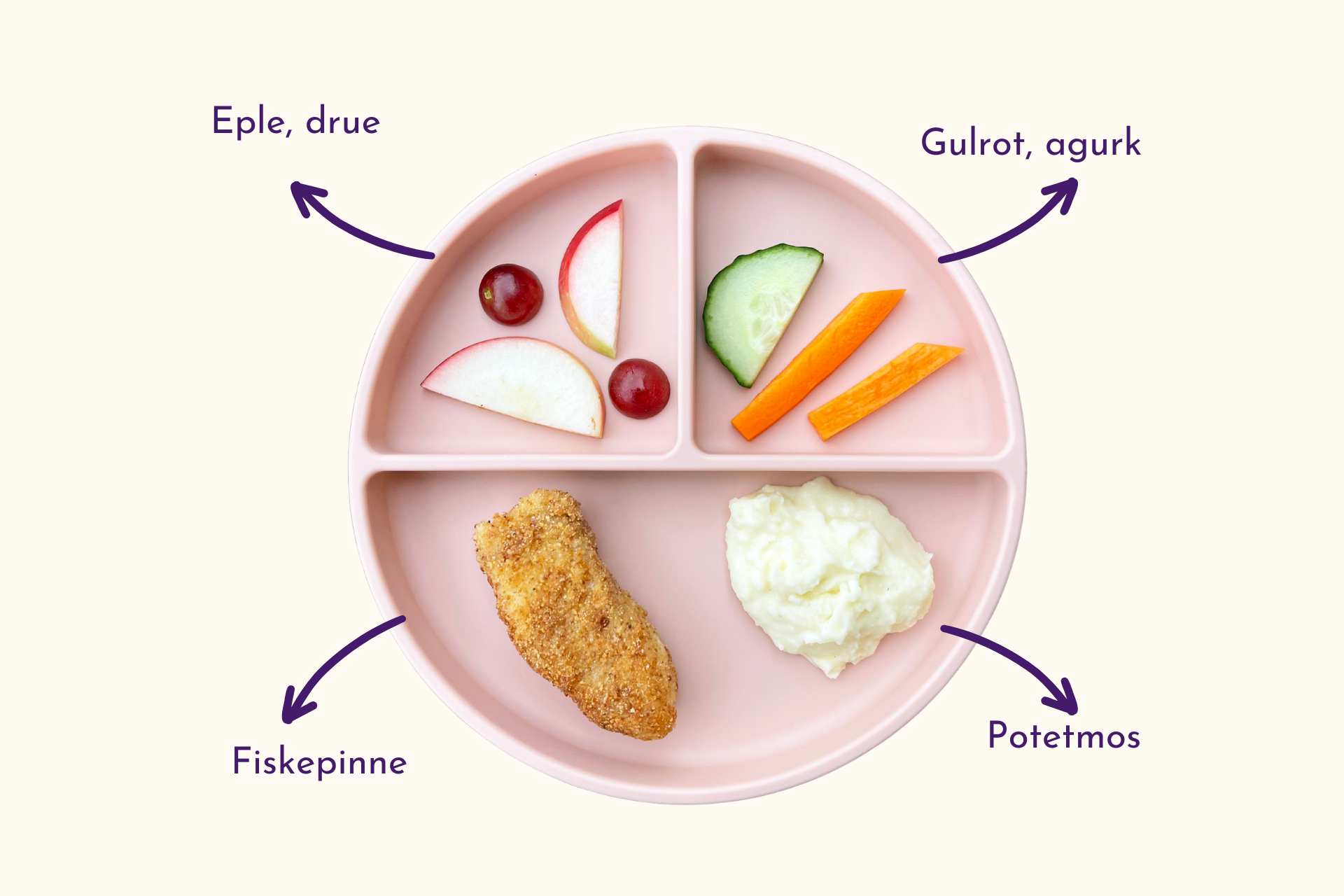 Potetmos istedenfor kokt potet. Agurk og gulrot uten dressing.